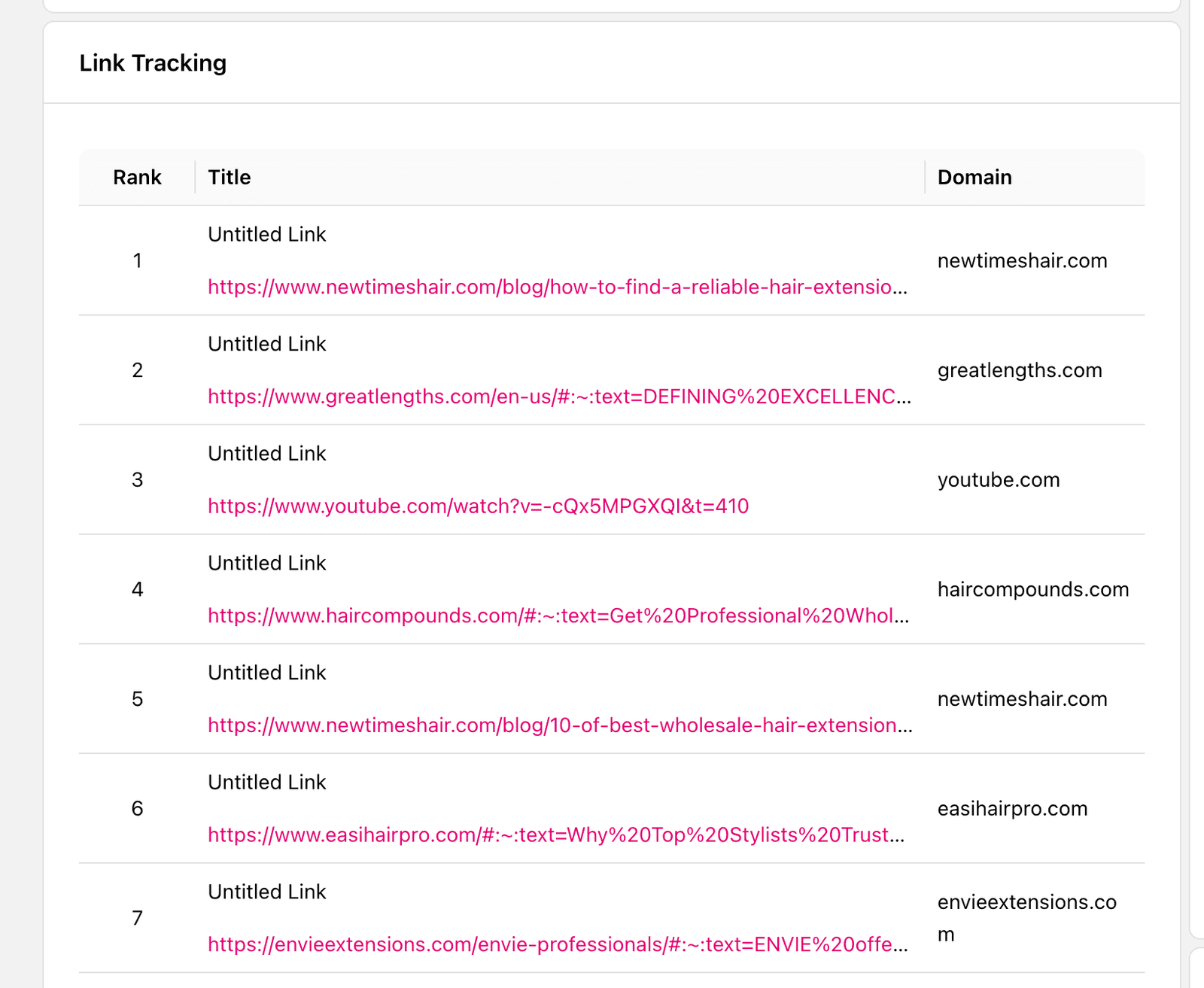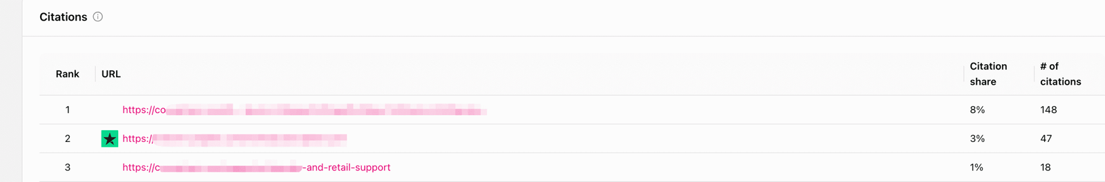 这个模块的主要功能是跟踪根据第一个模块生成的prompts的搜索数据,比如你的品牌和竞对在某个prompts下面的站点链接有哪些,排名是什么。