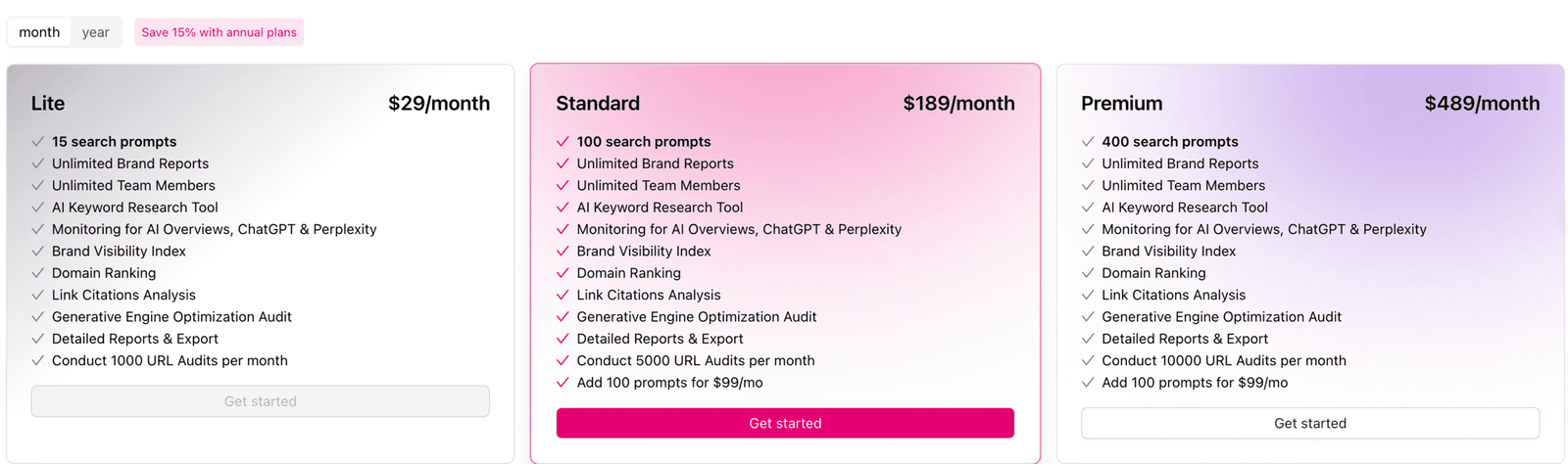 他的AI套餐,只能跟踪25个自定义提示词,1个品牌跟踪,着实有点捉襟见肘的感觉。