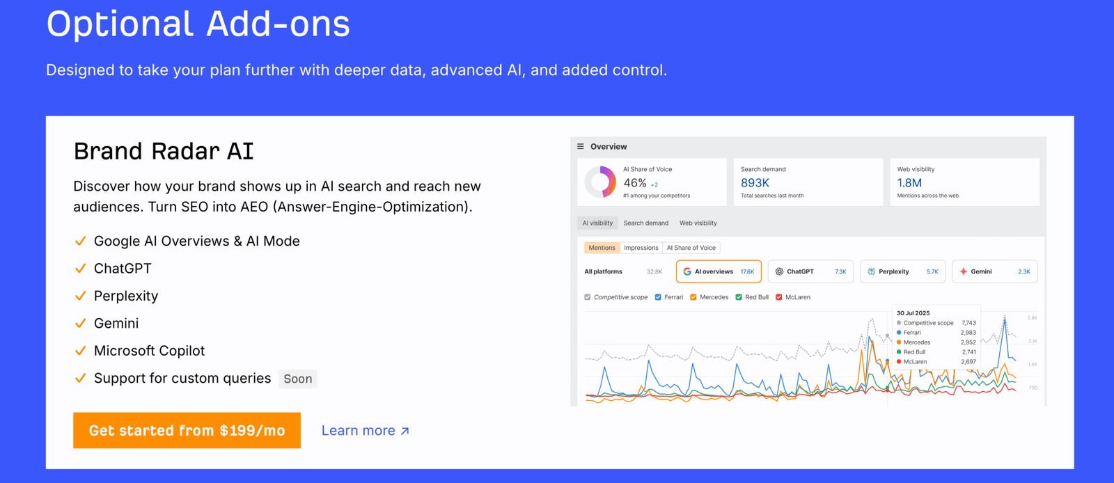 AI套餐,比Semrush还贵,每个月199美金。