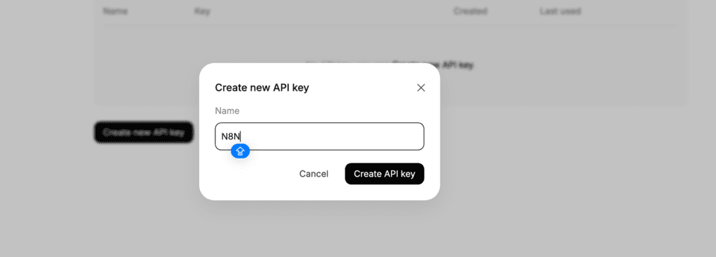 给你的API KEY命名,比如N8N,点击创建API KEY