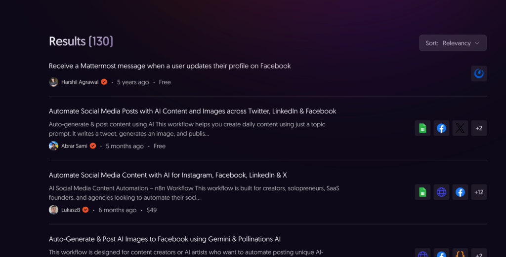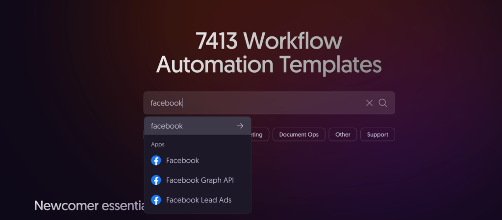 第2步,通过关键词来搜索相关的模板,比如我搜索Facebook相关的工作流模板