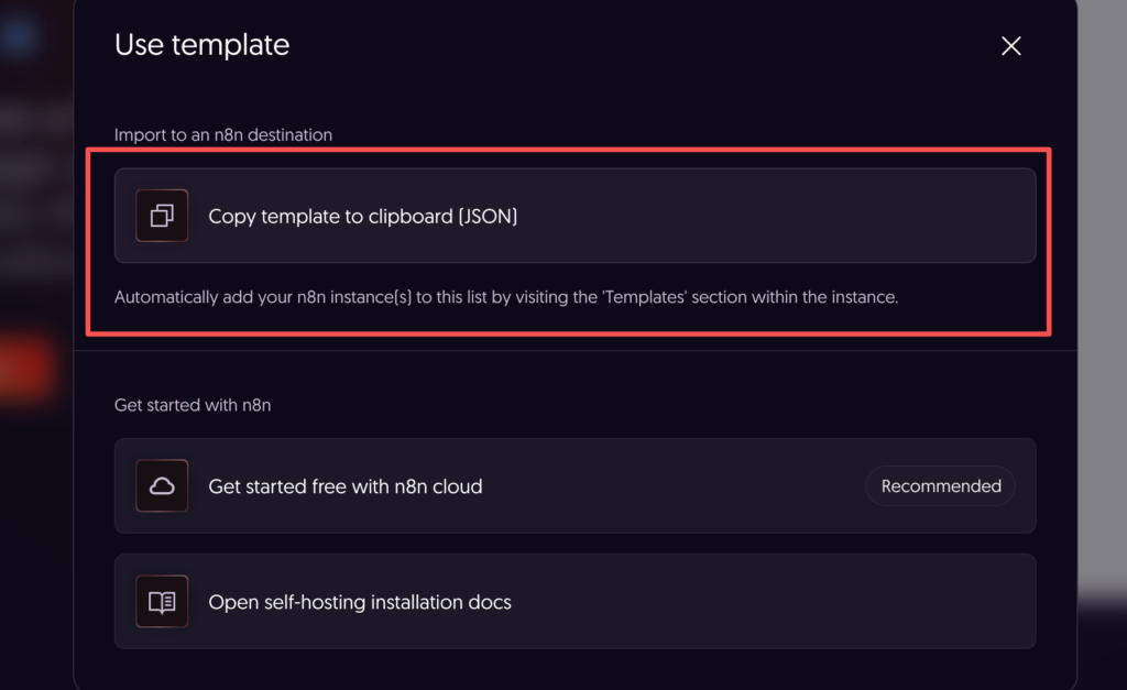 回到你的N8N工作后台,直接把刚才的模板复制过来
