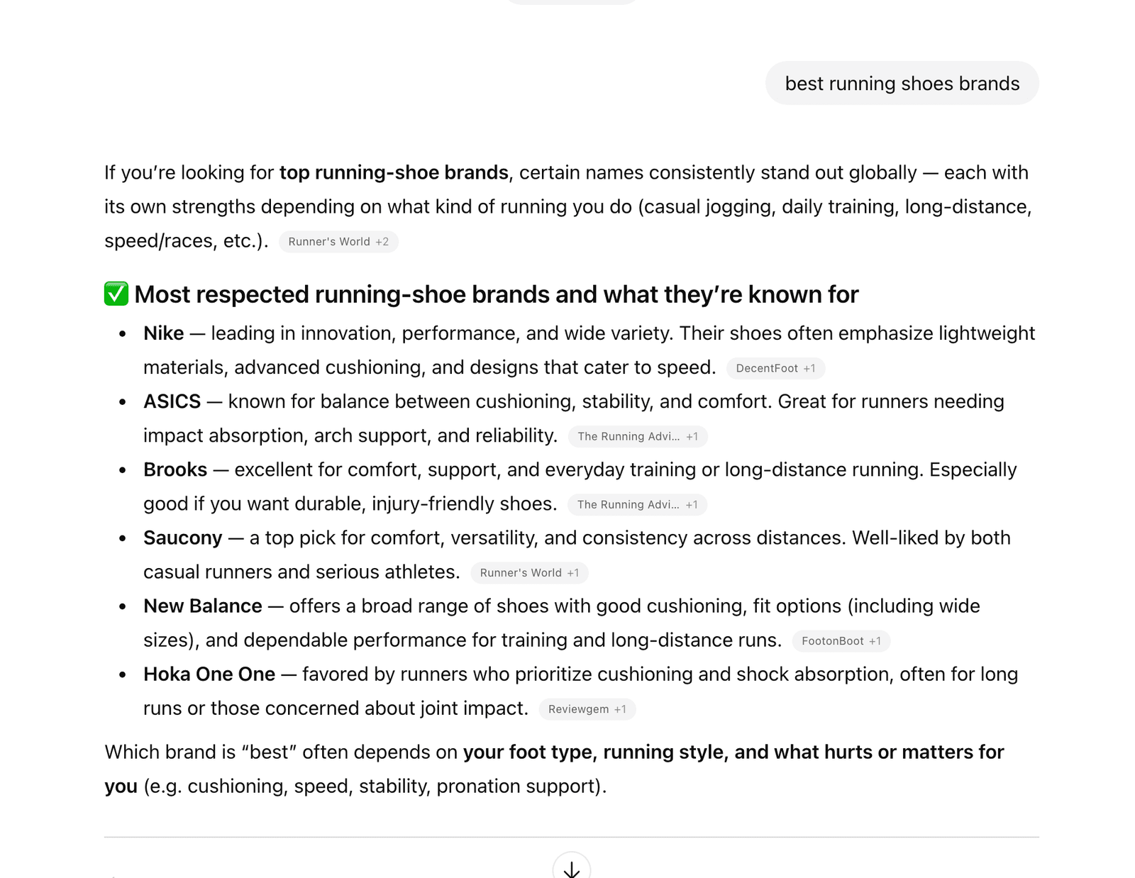 比如我让ChatGPT帮我找best running shoes,AI的大总管会给各个小弟query-fan下达命令来寻找各种有用的信息。