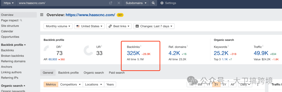 2,挨个把你的同行网站输入到Ahrefs的siteexplore,我们直接点击backlinks