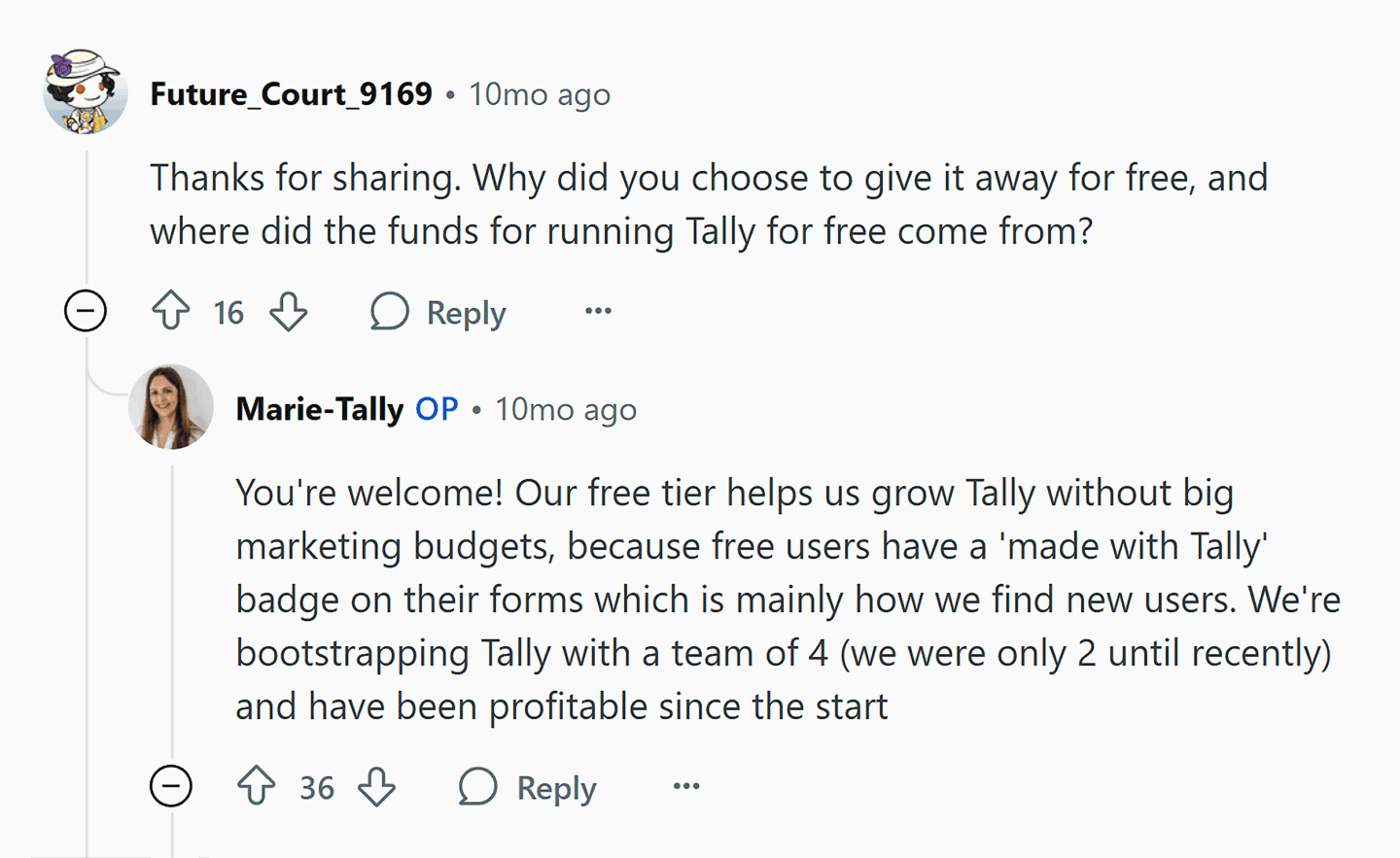 在线表单构建工具Tally善于运营Reddit来增强他们品牌被AI的援引。