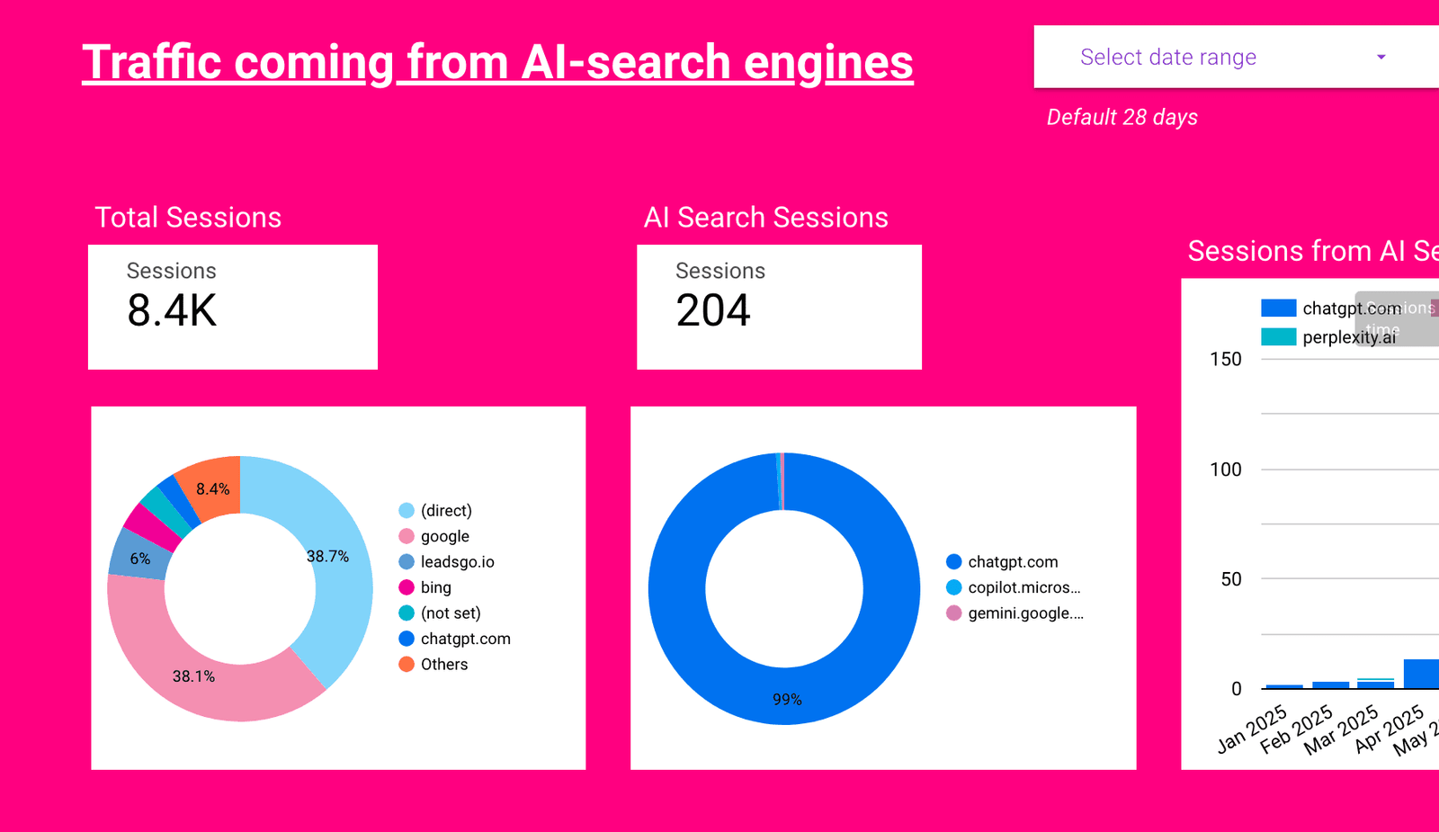 GA4后台跟踪的AI流量来源,平均停留时长接近3分钟。